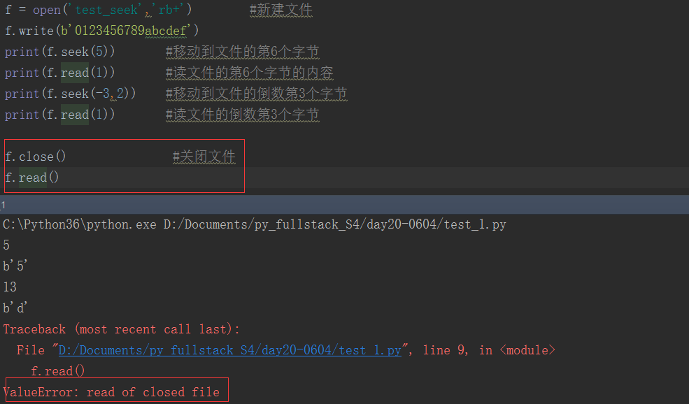 当你处理完一个文件后, 调用 f.close() 来关闭文件并释放系统的资源,如果尝试再调用该文件,则会抛出异常。