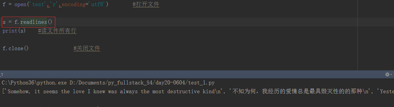 f.readlines() 将返回该文件中包含的所有行。