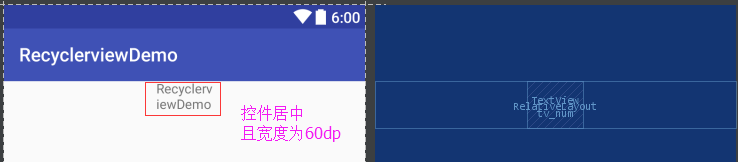 <?xml version="1.0" encoding="utf-8"?> <RelativeLayout xmlns:android="http://schemas.android.com/apk/res/android" android:layout_width="match_parent" android:layout_height="wrap_content"> <TextView android:id="@+id/tv_num" android:text="@string/app_name" android:layout_width="60dp" android:layout_height="50dp" android:layout_centerHorizontal="true" /> </RelativeLayout>