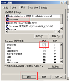 点击“everyone”,勾选完全控制的允许,确认