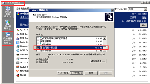 在添加或删除程序里点击应用程序和服务双击应用程序服务器asp.net