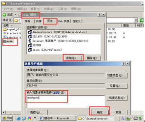 右击exam-->属性-->安全-->添加-->输入“everyone”-->确定