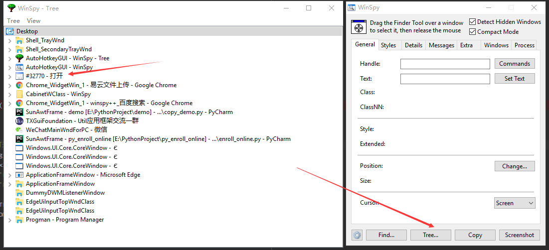 import win32con import win32gui from selenium import webdriver import time driver = webdriver.Chrome() driver.get('http://file.yiyuen.com/file/') time.sleep(1) # 百度上传图片Input类型 driver.find_element_by_name("files").click() time.sleep(2) dialog = win32gui.FindWindow('#32770', u'打开') # 对话框 这里的值即上一步winspy检测到的值 ComboBoxEx32 = win32gui.FindWindowEx(dialog, 0, 'ComboBoxEx32', None) ComboBox = win32gui.FindWindowEx(ComboBoxEx32, 0, 'ComboBox', None) Edit = win32gui.FindWindowEx(ComboBox, 0, 'Edit', None) # 上面三句依次寻找对象,直到找到输入框Edit对象的句柄 button = win32gui.FindWindowEx(dialog, 0, 'Button', None) # 确定按钮Button win32gui.SendMessage(Edit, win32con.WM_SETTEXT, None, 'https://www.baidu.com/img/baidu_resultlogo@2.png') # 往输入框输入绝对地址 win32gui.SendMessage(dialog, win32con.WM_COMMAND, 1, button) # 按button