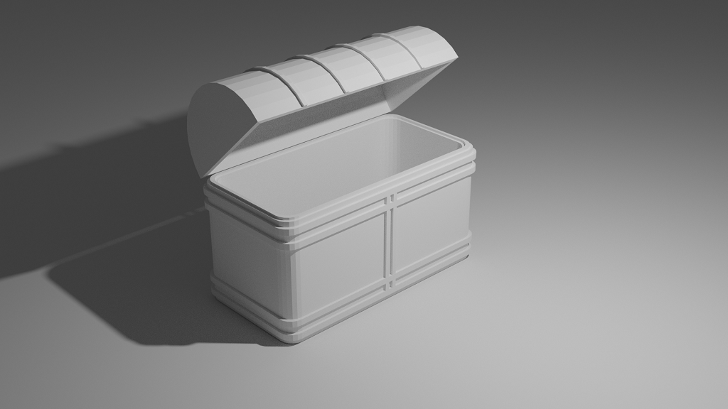 先制作整体的外形,再添加大的细节,利用Belve切角工具生成宝箱圆角