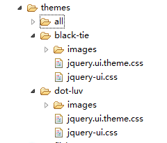 接下来就好办了,首先,我们在项目的themes目录下建立一个目录,把base目录下的除jquery.ui.theme.css、jquery-ui.css外的css样式文件全放进去