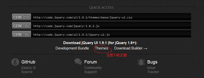 下载Jquery,官网:http://jquery.com; 下载Jquery UI,官网:http://jqueryui.com/