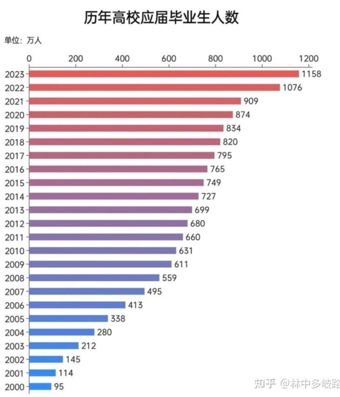 而 市场上存在大量的 年轻求职者 的原因: 一个是大学的连年扩招: