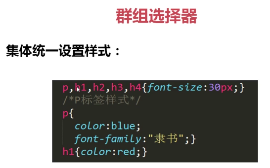 不同选择器具有相同的样式我们可以一起写,如下: