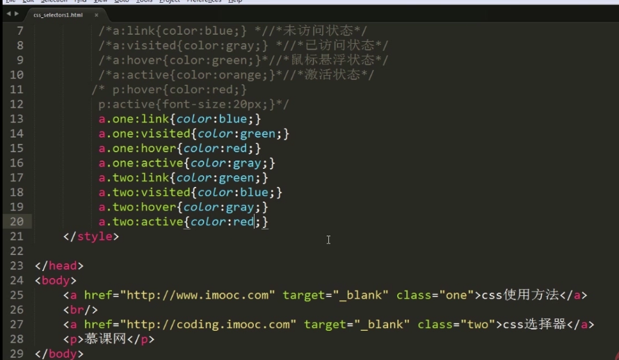 h1.red{font-size:20px} 只有设置了class="red"的h1标签,字体才设置为:20xp。