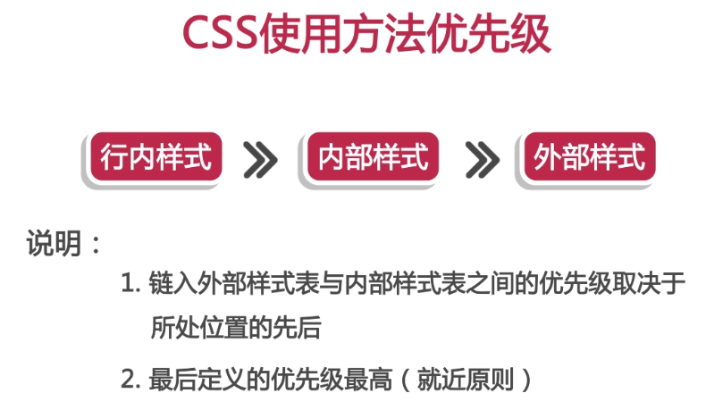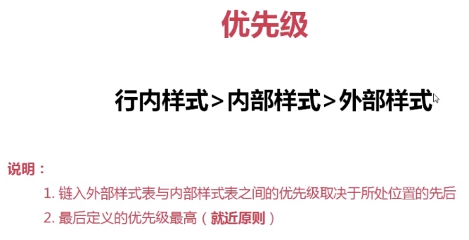 同类样式多次引用,样式表中后定义的样式优先级高,即:就近原则
