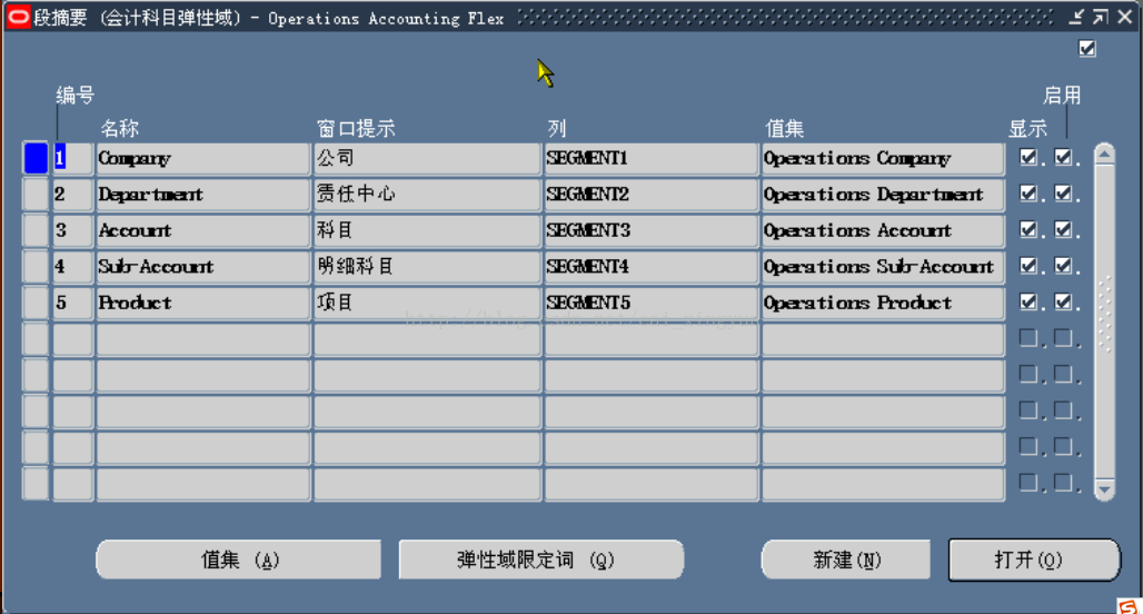 SEGMENT1-30 科目段值