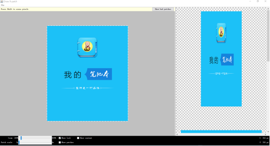 这时,我们在看看右侧预览效果如图3-8所示,明显看出右侧预览图片关键部分没有变现,这就是我们想要的效果。选择菜单栏的file菜单选择“save 9-path...”,把图片保存即可。保存结果图片扩展名自动变为“.9.png”。