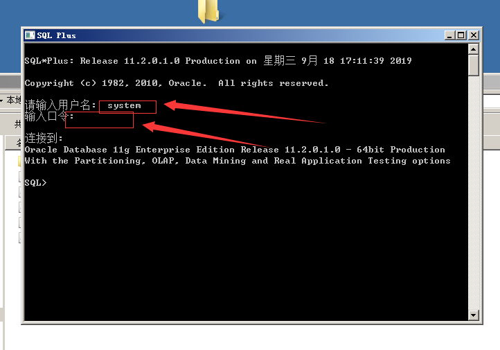 打开sqlplus 输入 system 回车输入密码 回车