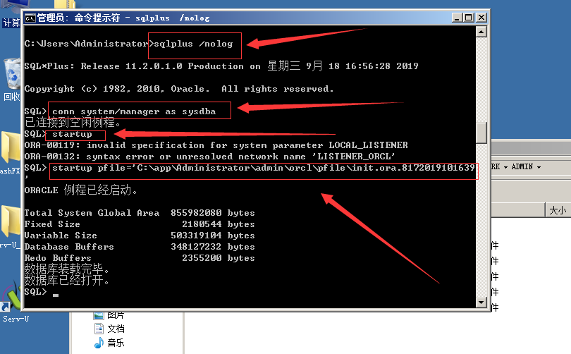 startup pfile=’C:\app\Administrator\admin\orcl\pfile\init.ora.8172019101639’