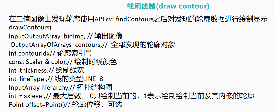 vector<vector<Point>>://一般在轮廓查找和轮廓绘制使用,参数 contours