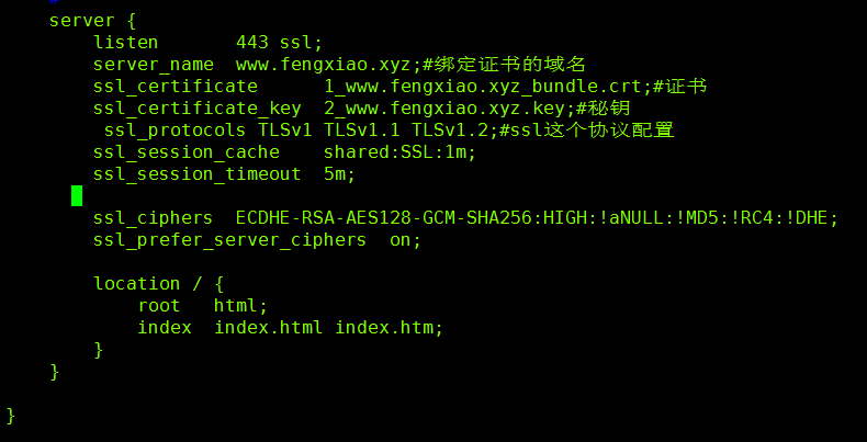 ssl_certificate 1_www.fengxiao.xyz_bundle.crt;#证书
