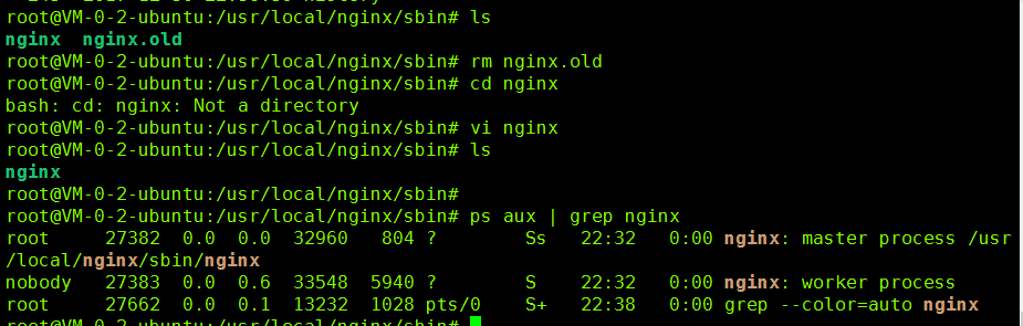 备份二进制文件,这一步我是看网上的,没感觉有什么用,这里我选择删了试试,我删除后服务并没有受到影响,仍然能继续访问。