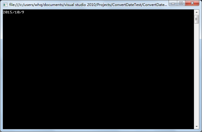 1 namespace ConvertDateTest 2 { 3 class Program 4 { 5 static void Main(string[] args) 6 { 7 string tradeDateStr = "09/Oct/15"; 8 DateTime date = Program.ConvertDate(tradeDateStr); 9 Console.WriteLine(date.ToShortDateString()); 10 Console.ReadKey(); 11 } 12 13 public static DateTime ConvertDate(string tradeDate) 14 { 15 DateTime _tradeDate = DateTime.MinValue; 16 if (!string.IsNullOrEmpty(tradeDate)) 17 { 18 if (DateTime.TryParseExact(tradeDate, "dd/MMM/yy", CultureInfo.InvariantCulture, DateTimeStyles.None, out _tradeDate)) 19 { 20 _tradeDate.ToString("MM/dd/yyyy", CultureInfo.InvariantCulture); 21 } 22 else 23 { 24 return _tradeDate; 25 } 26 return _tradeDate; 27 } 28 else 29 { 30 return _tradeDate; 31 } 32 } 33 } 34 }