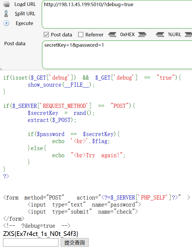 传参:secretKey=1&password=1,得到 flag