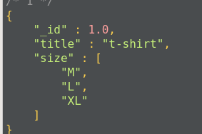 db.t2.insert({_id:1,item:'t-shirt',size:['S','M','L']})