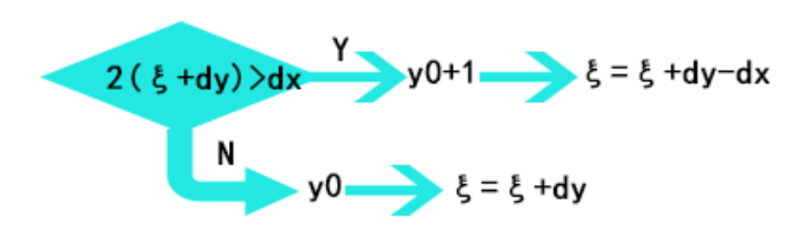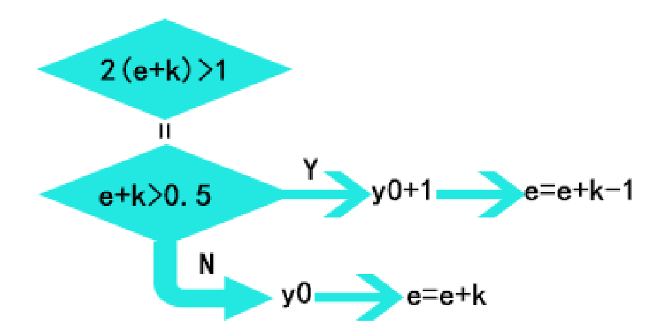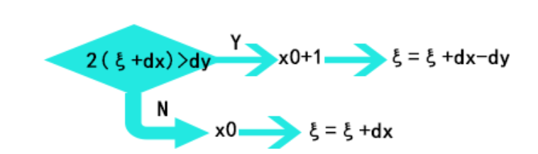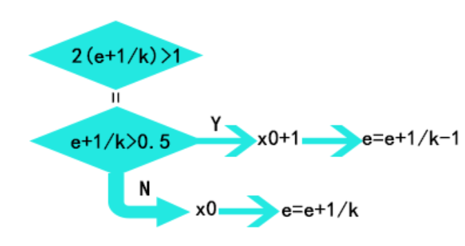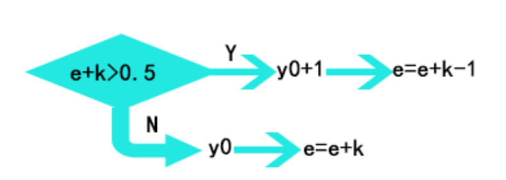 之后的e代表每次的误差积累,初始值为0,可以计算出斜率为k=dy/dx=(y0-y1)/(x0-x1)