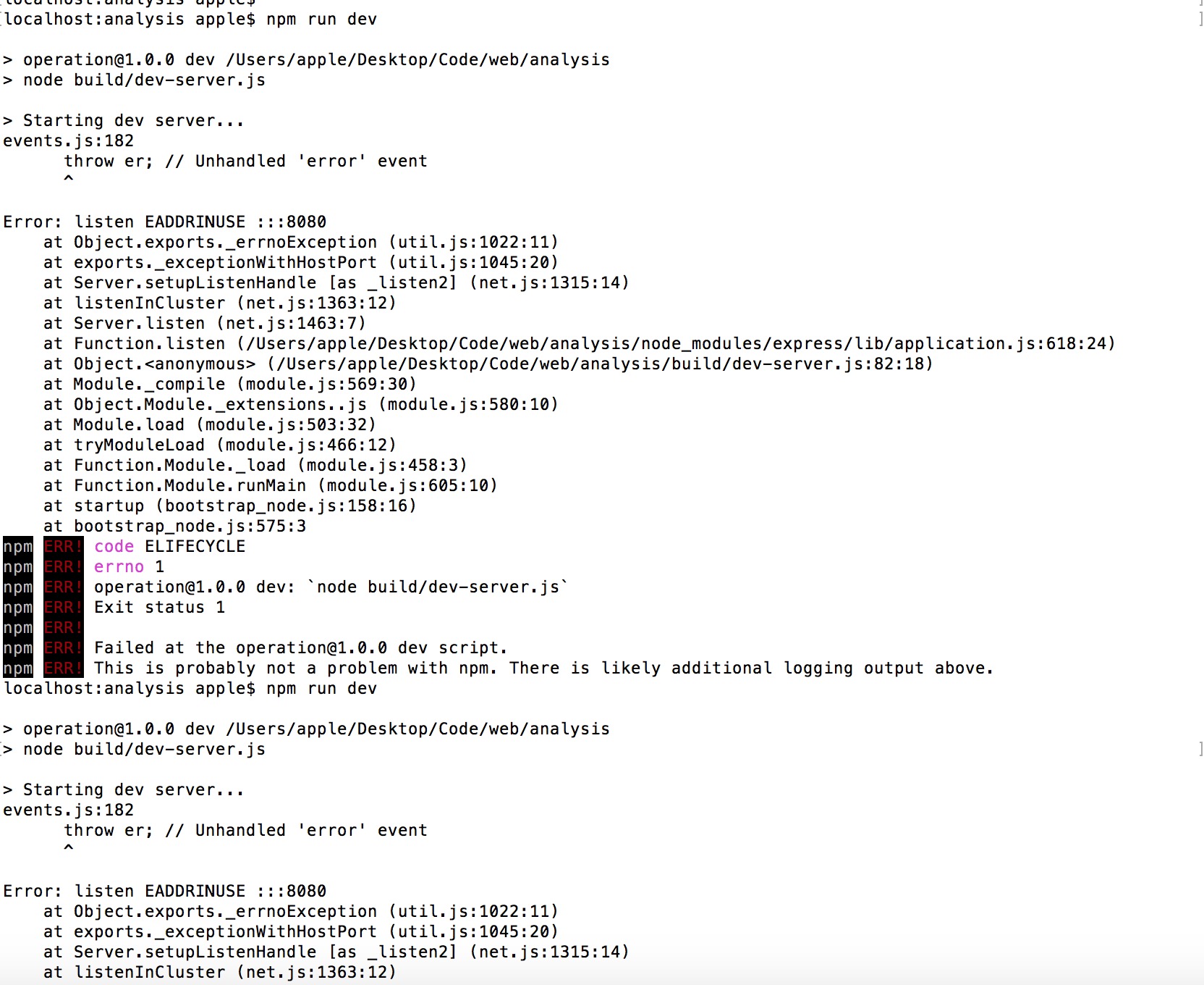 终端输入fg, 然后再输入control+c, 然后再试npm run dev,就OK了