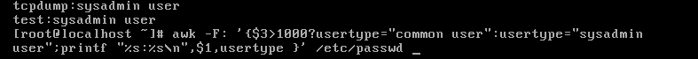 如果用户ID大于1000,则usertype=common user 否则等于sysadmin user .然后输出$1和usertype