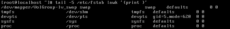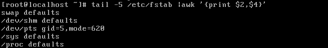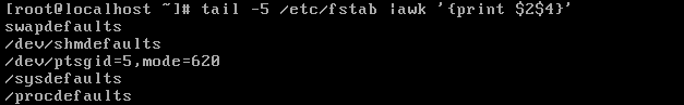 首先取出文件中的后五行,然后使用awk取出其第二和第四个段(默认空格为分隔符)