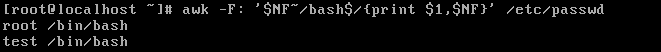 如果$NF的内容能匹配行末是bash ,这输出$1,$NF