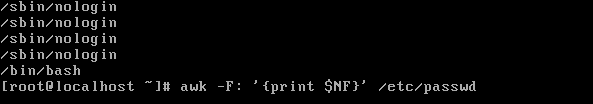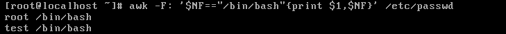 如果最后一个字段为/bin/bash,则输出$1,$NF