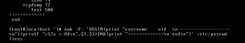 BEGIN{}:任何在BEGIN之后列出的操作(在{}内)将在awk开始扫描输入之前执行一次。