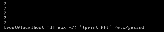 $NF代表的是$7即最后一行。所以输出文件的每一行的最后一个字段。