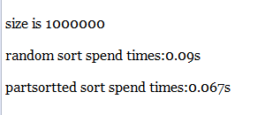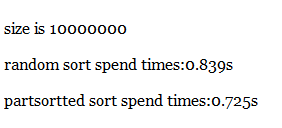 System.out.println("\npartsortted sort spend times:" + (end_partsortted - start_partsortted)/1000 + "s");