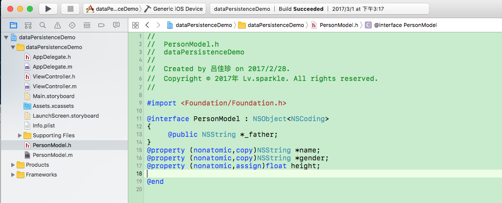 3.NSKeyedArchiver,要想使用这种方式存储,则必须遵循NSCoding协议