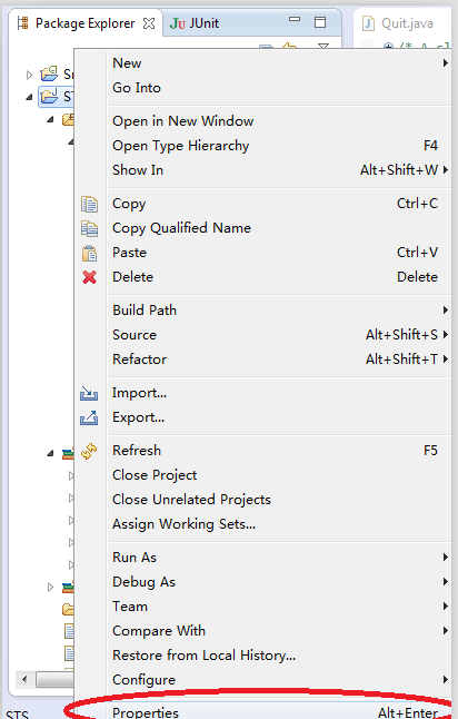 右键选择项目属性: