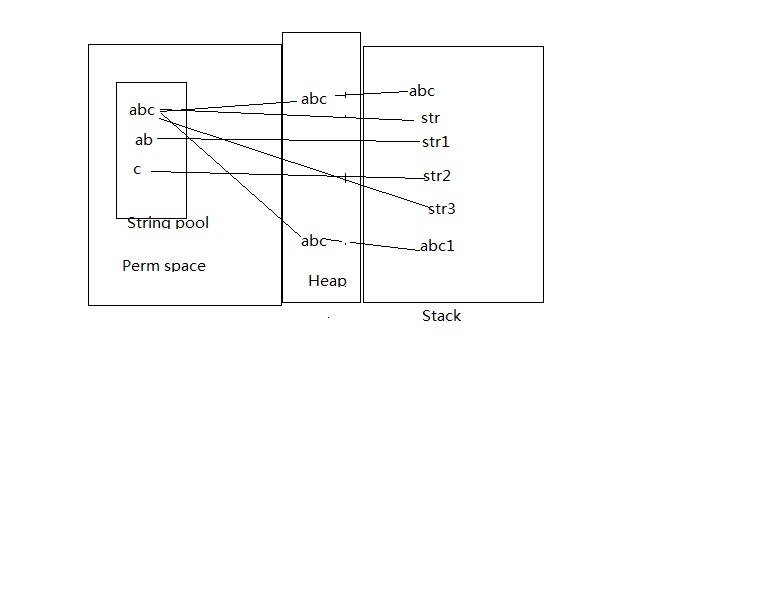 在java 1.6中,String pool存放在perm space永久区中,可以用过直接string赋值的方式(7#)将字符串放到string pool里边,如果用new String(6#)的方式则不然,需要创建一个对象放到内存中,如果池子里边存在的话,那么直接指向,如果没有的话,需要再次创建一个对象。