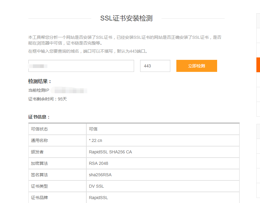 你要是想要知道网站的ssl证书是否安装成功,可以在【证书工具】里选择【SSL证书安装检测】进行查询即可。(我是用的省心装,文件上传了剩下的就不用管啦,到时候检测下就好)