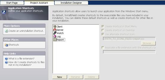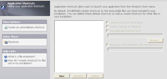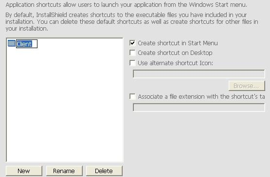 Installshield可以自动监测到.exe文件的存在,自动生成快捷方式,用户只需要做一些适当修改即可。