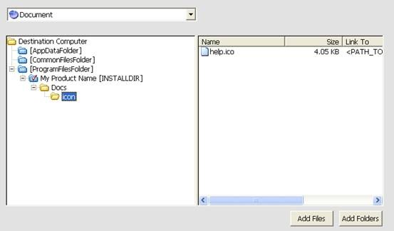 Document这个Feature,除了文件所用的图标外,什么都不要添加,后面我们将用安装时实时拷贝的方式来拷贝文档进来。