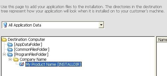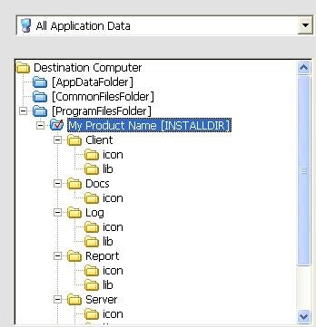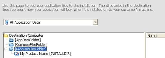 这里我不想使用Program Files | Company Name | Product Name这个路径,我想使用Program Files | Product Name,我直接点击选中My Product Name[INSTALLDIR]拖动到ProgramFileFolder下,还可以直接将My Product Name 改成自己想要的文件夹名字