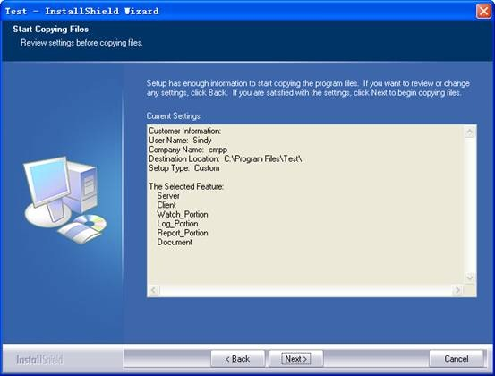 4. 用户的输入信息、所选安装路径、所选安装组件将显示在安装界面上(Installshield虽然自带了此界面,但是默认是显示为空的,需要写脚本来显示信息)
