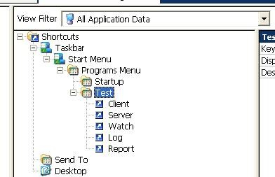 不要告诉我你不会改,直接拖动Test文件夹往Program Menu(即开始菜单下的那个“所有程序”)下一塞即可,然后删除掉多余的Company Name文件夹。