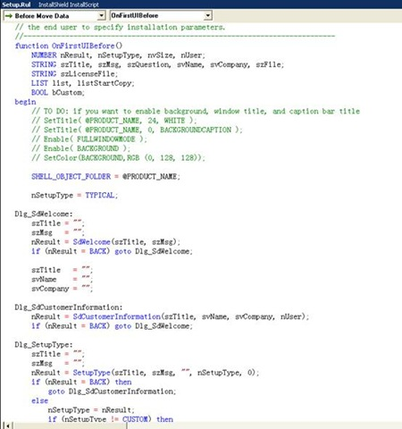 Installshield可以说是最好的做安装程序的商业软件之一,不过因为功能的太过于强大,以至于上手和精通都不是容易的事情,之前都是用Installshield的Project Assistant对付过去的,这次做这个安装程序,为了实现一些功能,必须写代码,国内外现成的资料很少,而且很多都语焉不详,自己反复啃了多次,对比Installshiel自带的help,才明白资料所表达的意思。这个安装程序虽然比较简陋,在行家眼里可能是小菜一碟,但是也花了笔者一个星期的时间,阅读了很多资料,啃了好几天英文help,集成了很多先驱者的经验,也费了自己不少心血做成的,对每一段代码的用处、每一个用到的函数都进行了详细的说明,因此转载时请务必保留转载出处和由艾泽拉斯之海洋女神出品的字样;如需刊登,请与作者联系。