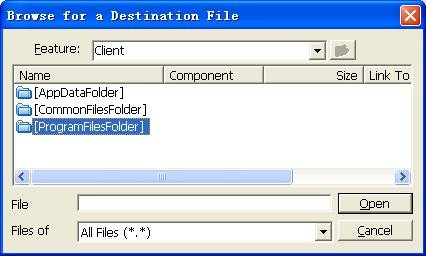 然后为该Feature添加安装时该Feature要安装的文件。