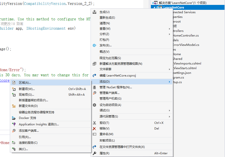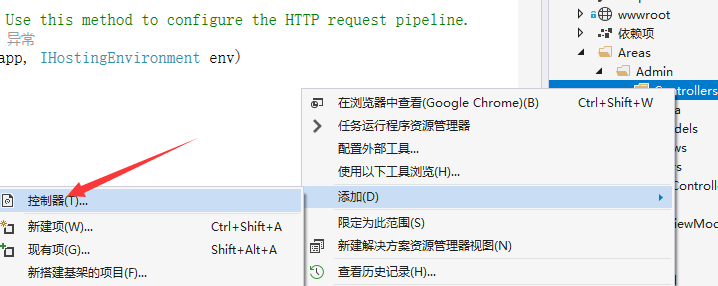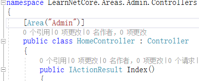 5.在区域内控制器类名上添加 [Area("Admin")]