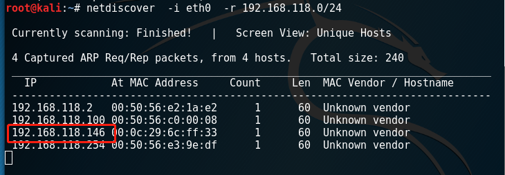 netdiscover -i eth0 -r 192.168.118.0/24